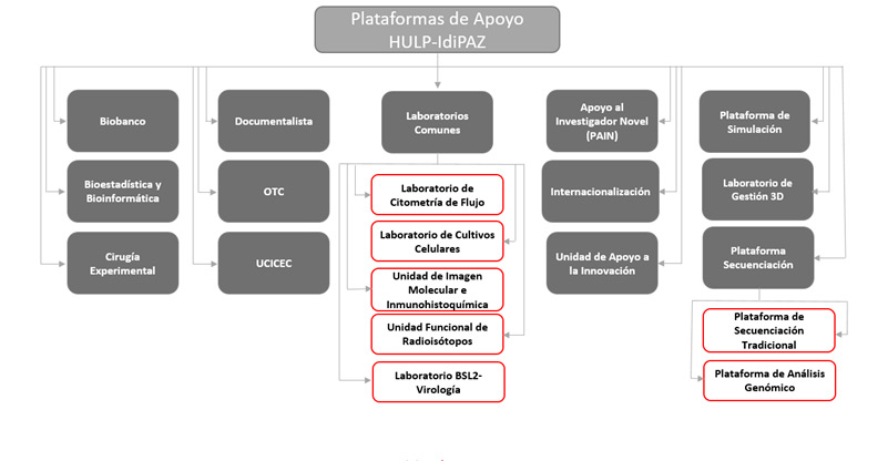 IdiPAZ cuenta con las siguientes Plataformas de Apoyo al investigador y Laboratorios Comunes propios.: